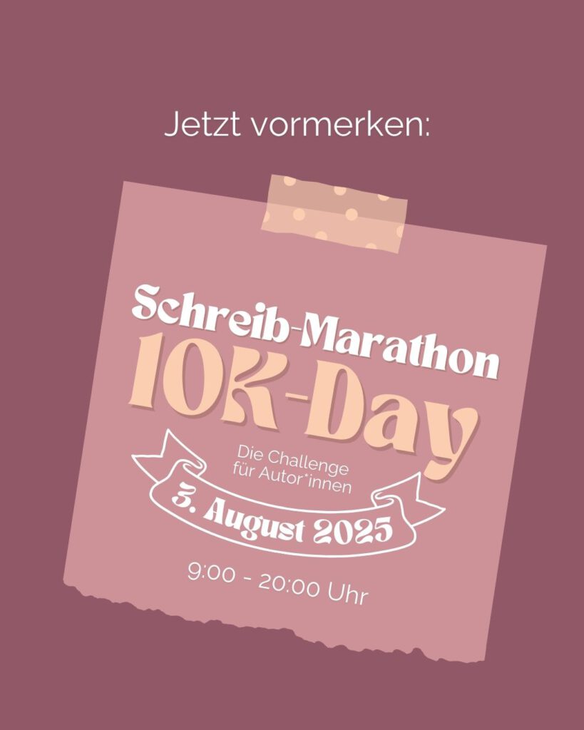 Termine Der nächste 10K-Day findet am 3. August 2025 statt Das Ziel: 10.000 Wörter an einem Tag schreiben eigene Schreibprojekte voranbringen möglichst viele Autor*innen zum Mitmachen motivieren Spaß mit der Schreib-Community haben Zum Instagram-Account